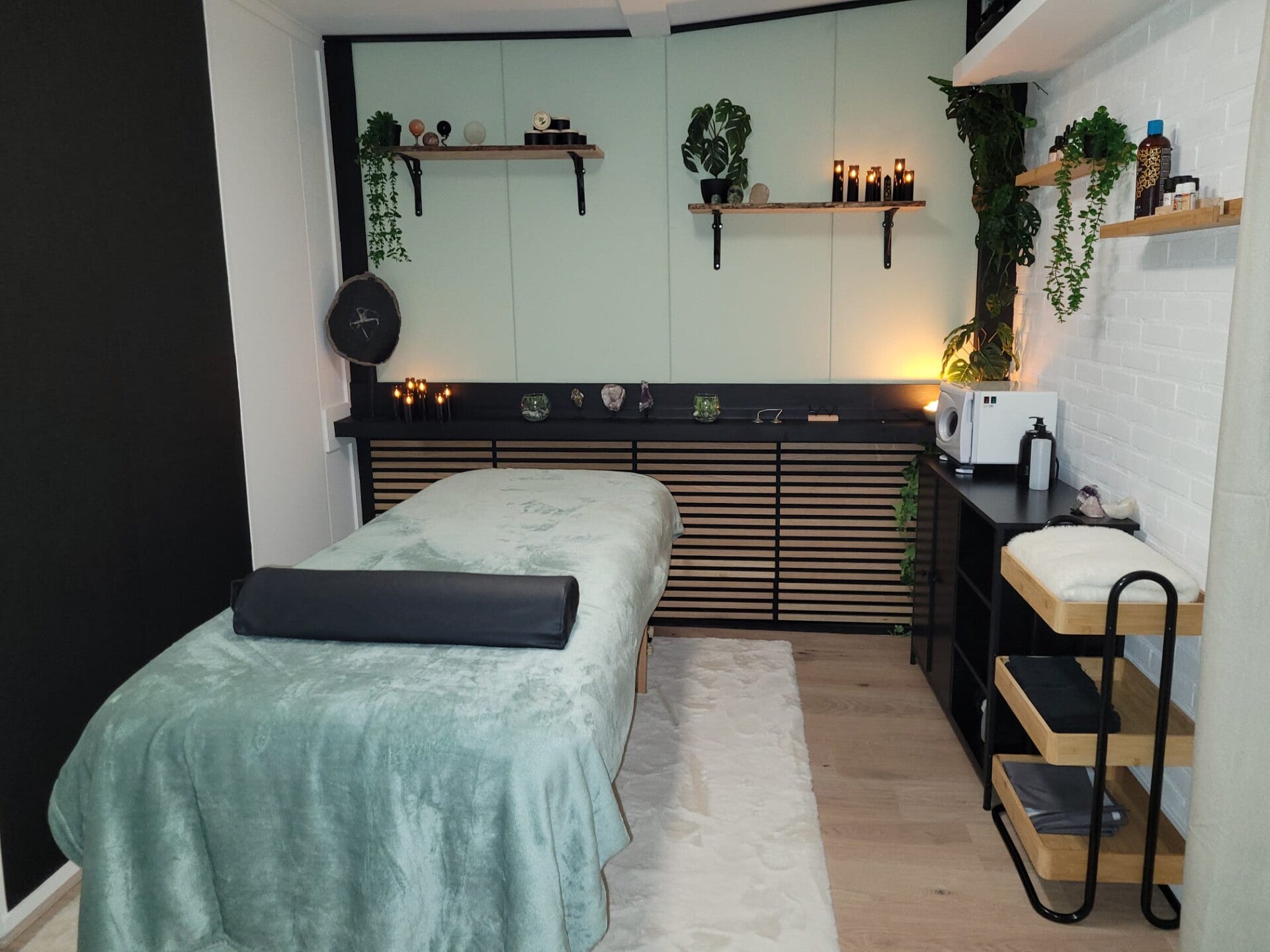 De ruimte is met zorg en een beetje magie ingericht, met zachte geuren, warme tinten en een kalme sfeer die je helpt om los te laten. Elke behandeling wordt afgestemd op jouw energie, zodat je niet alleen fysiek ontspant, maar ook op een dieper niveau tot rust komt.
