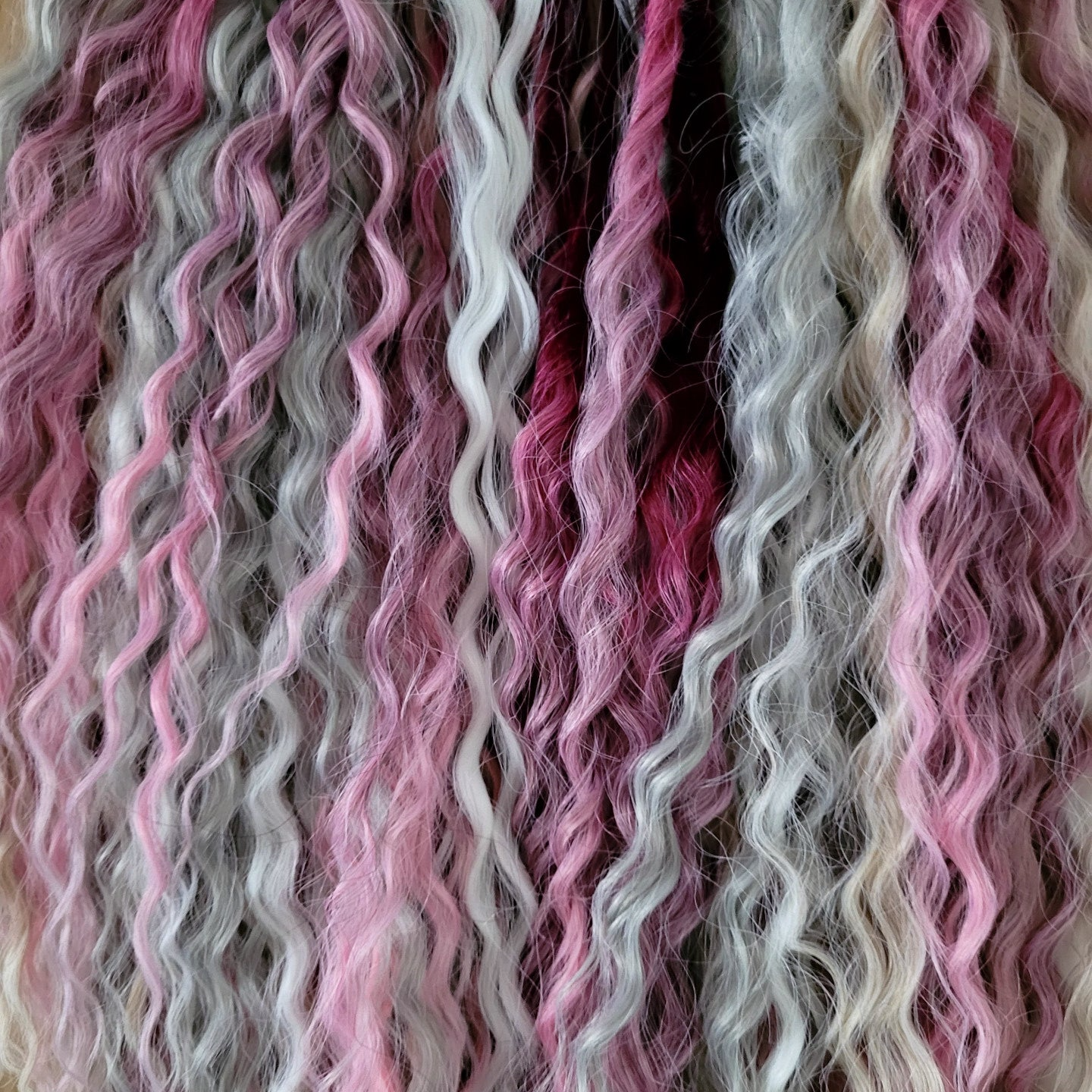 60DE curls in een hele vette kleuren combi. Van donker naar licht, in samenwerking met licht grijs en wit tinten. Een echte headturner. De krullen zijn herbruikbaar bij goed onderhoud en gemaakt van synthetische haarvezels
